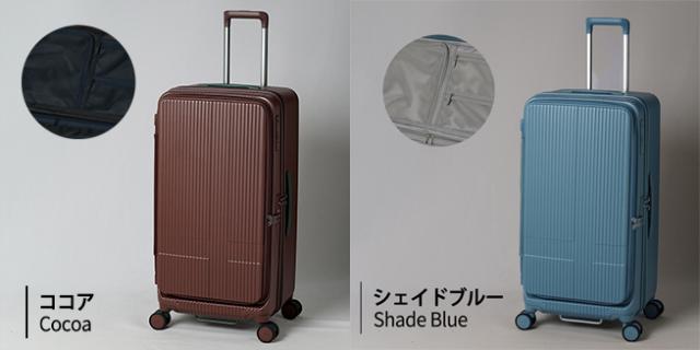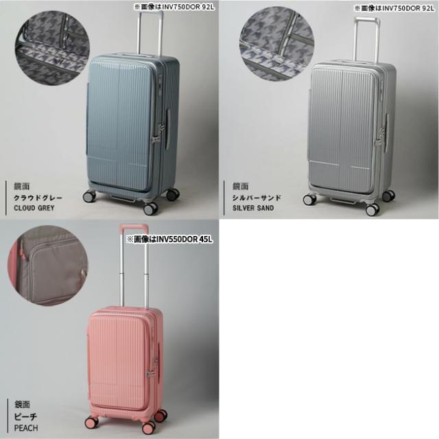 イノベーター innovator INV750DORは、無料受託手荷物対応の大容量92Lスーツケース。横開きフロントオープン構造で、フロントから本体収納へ直接アクセス可能。長期旅行や海外旅行に最適なモデルです。