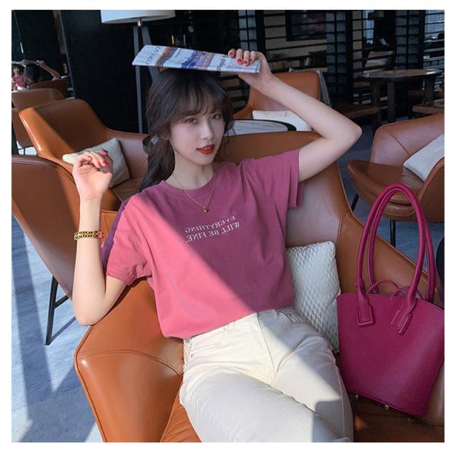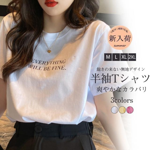 Tシャツ レディース 半袖 英文字 カットソー インナー クルーネック プルオーバー ゆったり カジュアル 着痩せ 通勤 通学 夏