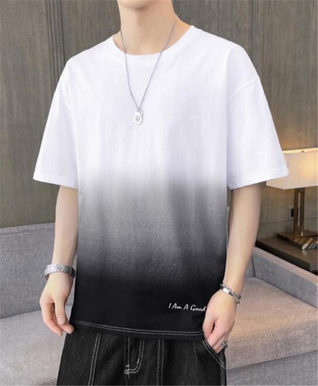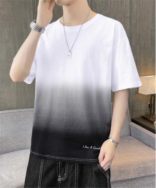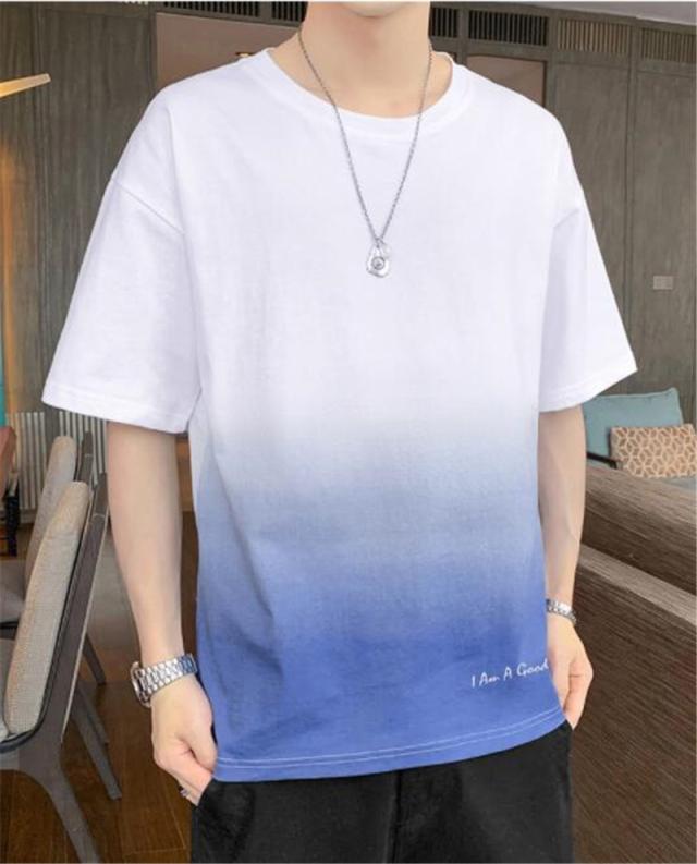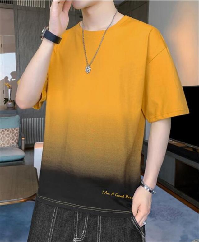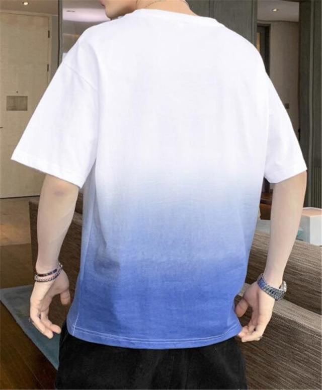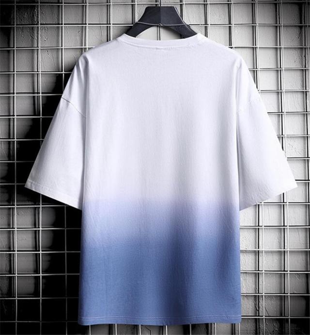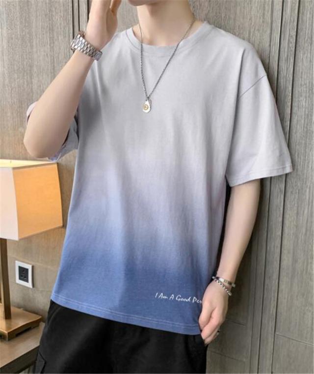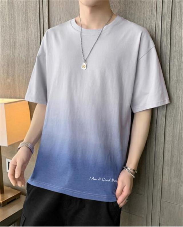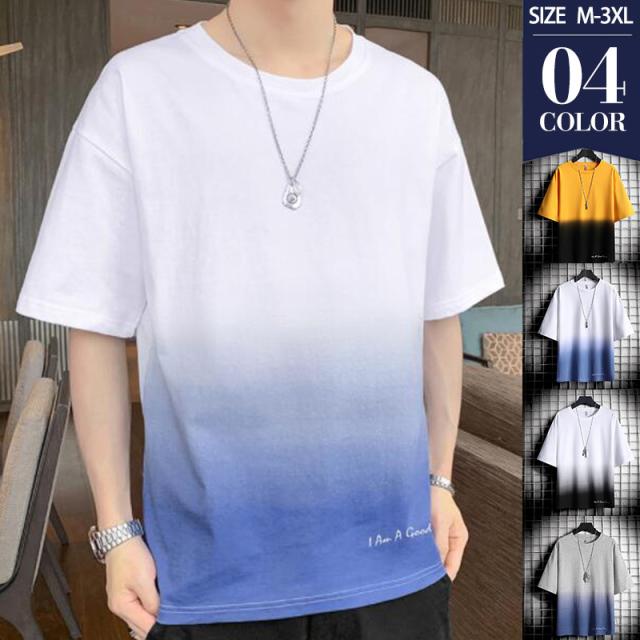 Tシャツ メンズ 半袖 グラデーション 五分袖 ゆったり 配色 切り替え 半袖Tシャツ 英文字 カジュアル 大きいサイズ 涼しい