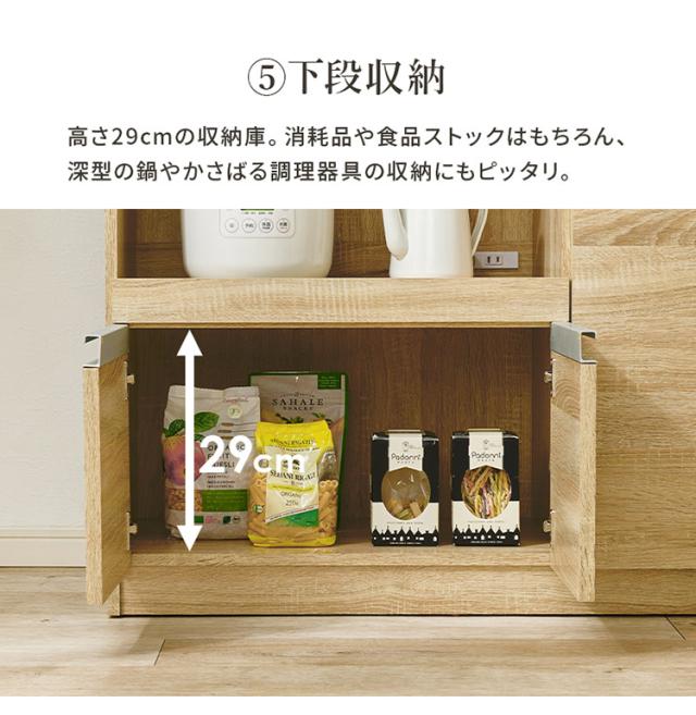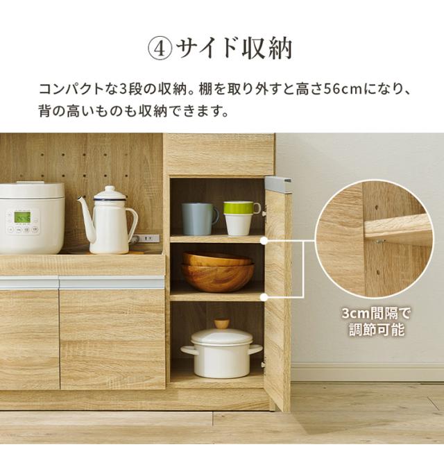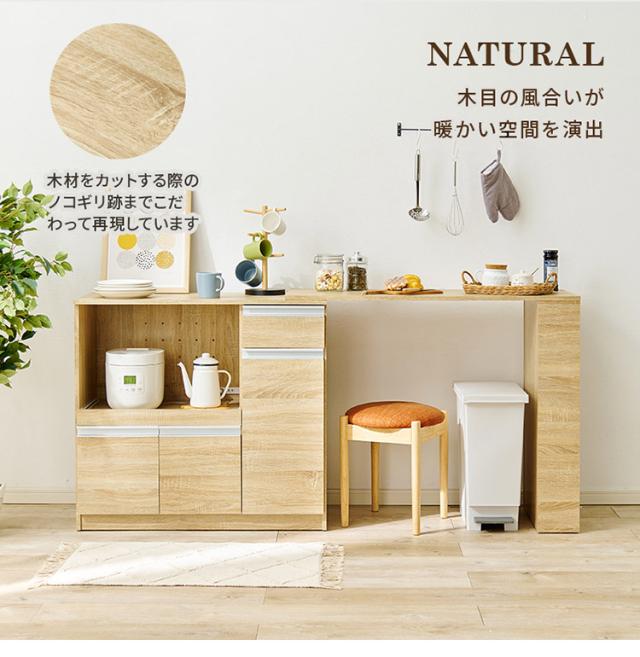 お部屋の広さや収納するものに合わせて幅を調整できるカウンターキャビネット。食器や調理器具、キッチン家電などがスッキリ片付く大容量収納。