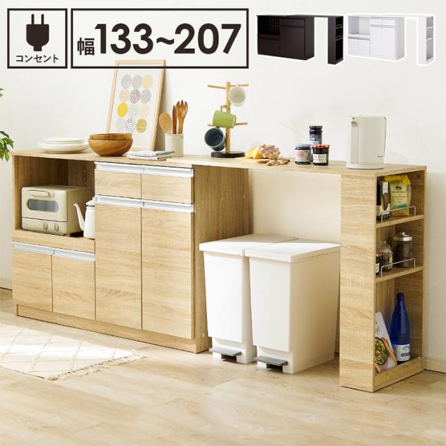 伸縮キッチンカウンター 2点セット 幅104~178 2口コンセント スライド棚 引出し 扉収納 キッチン収納 キャビネット(代引不可)【送料無料】