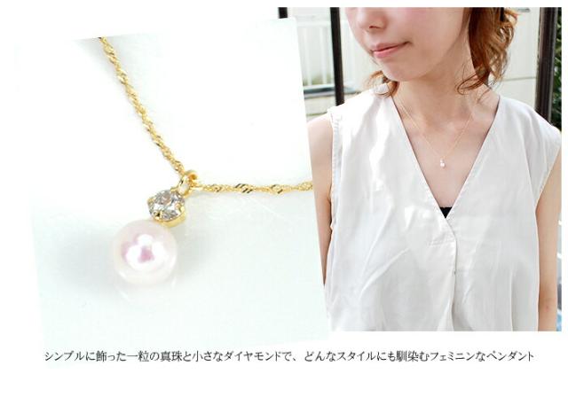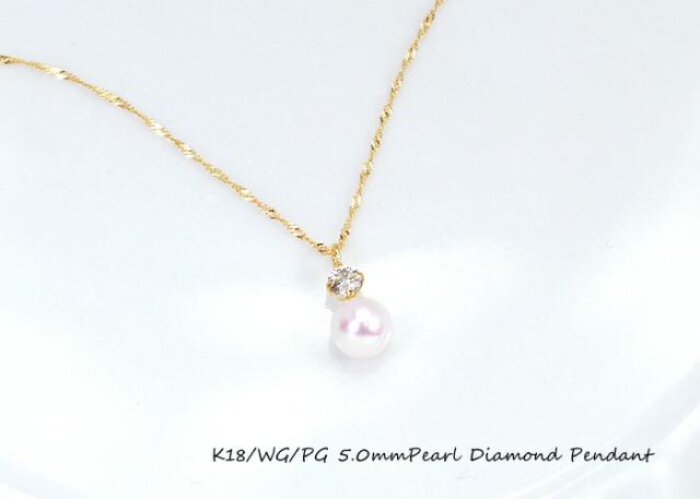 ペンダント ネックレス ダイヤモンド あこや 本真珠 パール 0.09ct 5mm 18金 K18 一粒 1粒 一珠 1珠 レディース アクセサリー ジュエリー ギフト ダイヤ 371146
