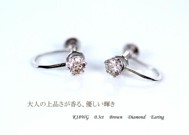 イヤリング ブラウン ダイヤモンド 0.3ct 18金 ホワイトゴールド K18 WG 一粒 1粒 ソリティア 6本爪 6爪 レディース アクセサリー ジュエリー ギフト ダイヤ 90427