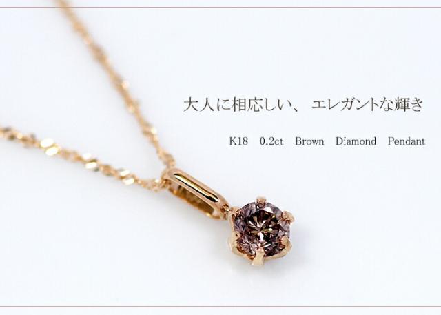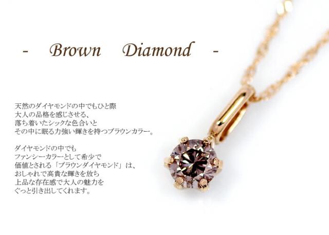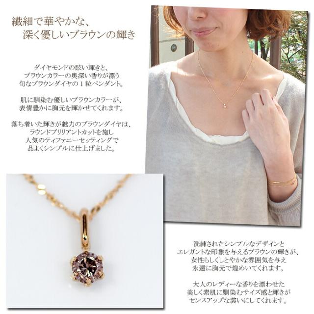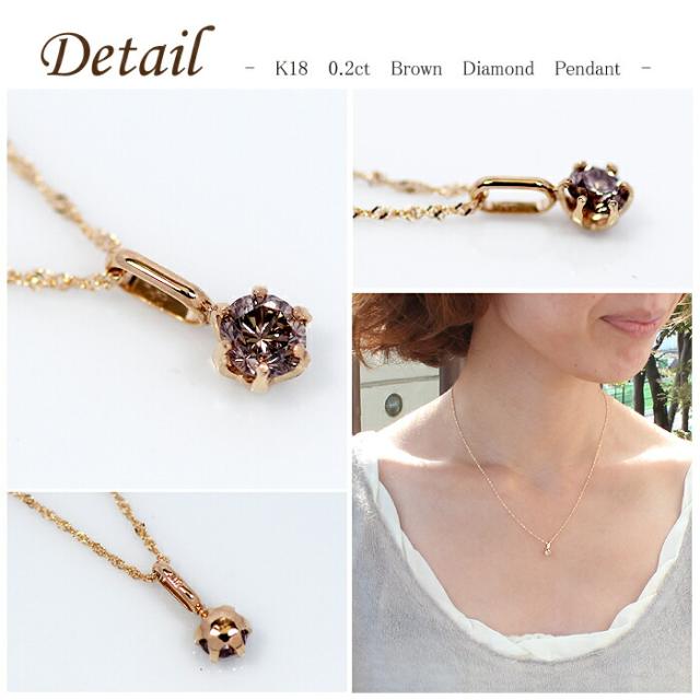 ペンダント ネックレス ブラウン ダイヤモンド 0.2ct 18金 K18 一粒 1粒 ソリティア 6本爪 6爪 レディース アクセサリー ジュエリー ギフト oe7843 ダイヤ