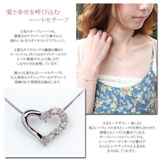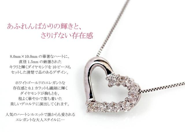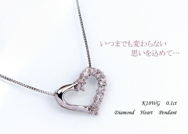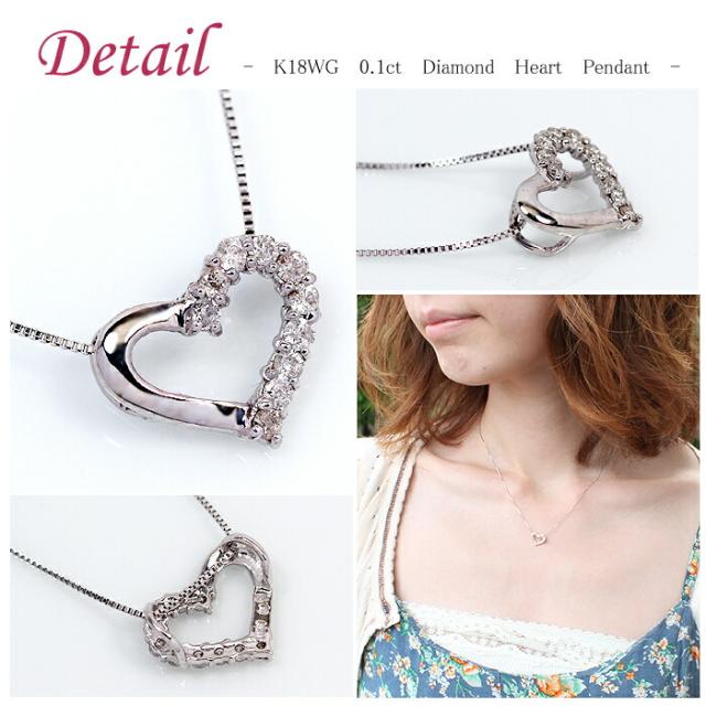 ペンダント ネックレス ダイヤモンド 0.1ct 18金 ホワイトゴールド K18 WG ハート レディース アクセサリー ジュエリー ギフト 36582 ダイヤ