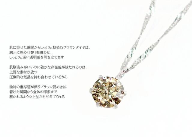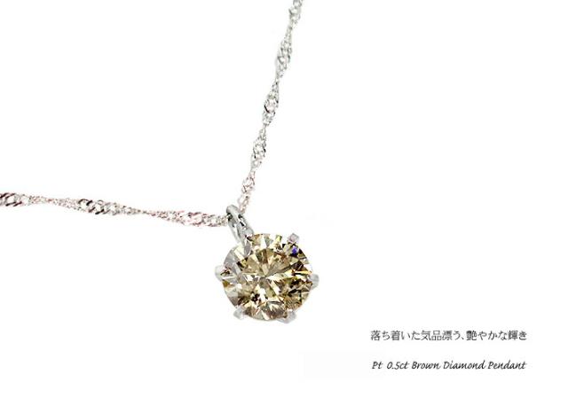 ペンダント ネックレス ブラウン ダイヤモンド 0.5ct プラチナ Pt 一粒 1粒 ソリティア 6本爪 6爪 レディース アクセサリー ジュエリー ギフト 390619 ダイヤ