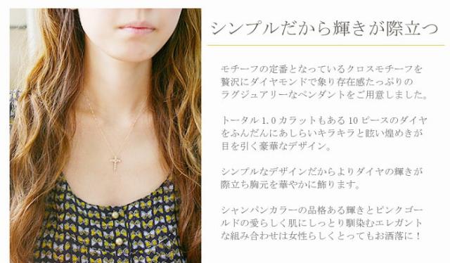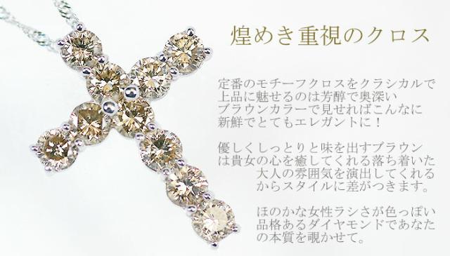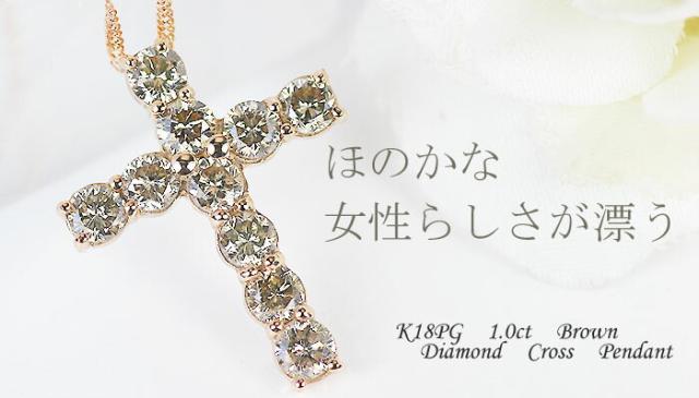 ペンダント ネックレス ブラウン ダイヤモンド 1ct 18金 ホワイトゴールド ピンクゴールド K18 WG PG クロス 十字架 レディース アクセサリー ジュエリー ギフト 147392 ダイヤ