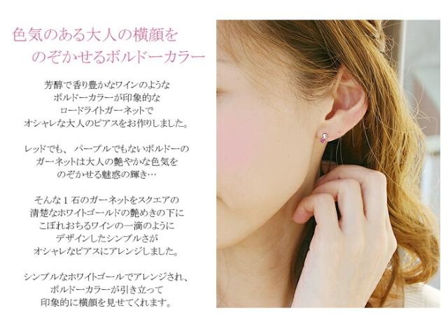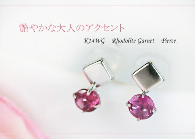 ピアス ロードライト ガーネット 14金 ホワイトゴールド K14 WG 4本爪 4爪 レディース アクセサリー ジュエリー ギフト 149320