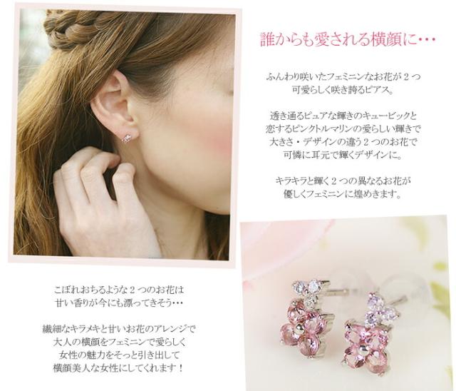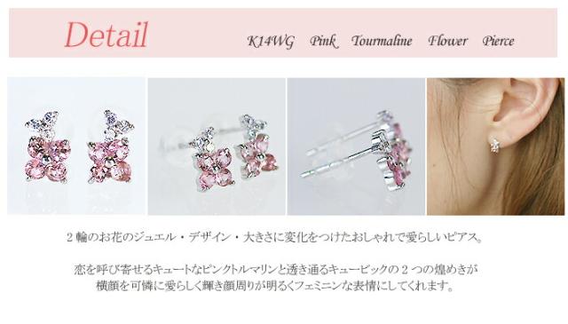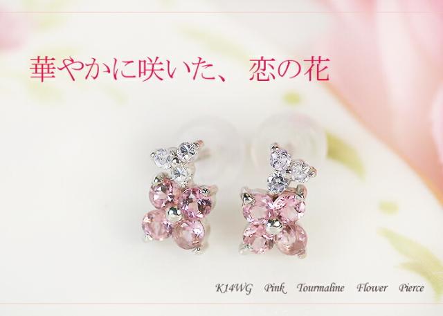 ピアス ピンク トルマリン 14金 ホワイトゴールド K14 WG フラワー 花 レディース アクセサリー ジュエリー ギフト 150228