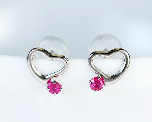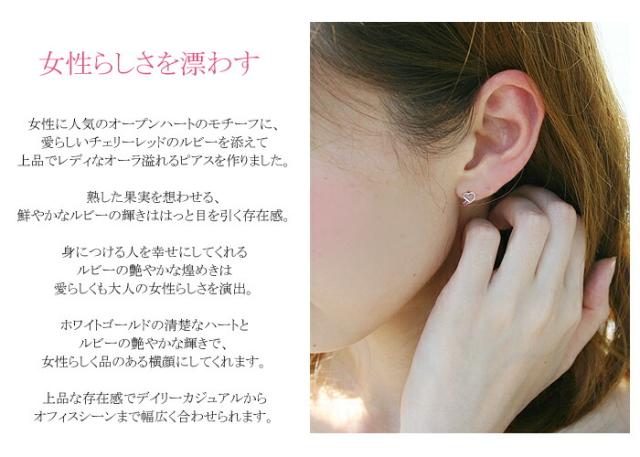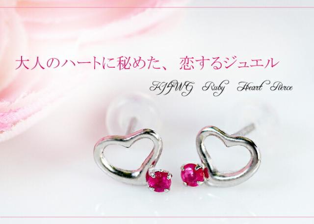 ピアス ルビー 14金 ホワイトゴールド K14 WG ハート レディース アクセサリー ジュエリー ギフト 150274