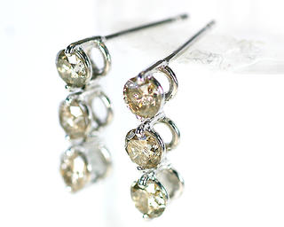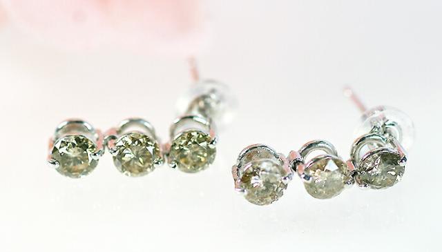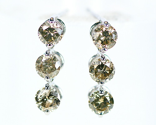 ピアス ブラウン ダイヤモンド 1ct 18金 ホワイトゴールド K18 WG スリーストーン 3ストーン 3石 レディース アクセサリー ジュエリー ギフト 156583 ダイヤ