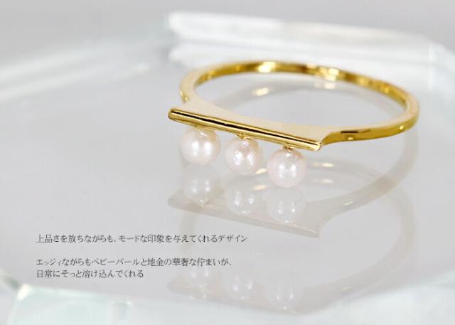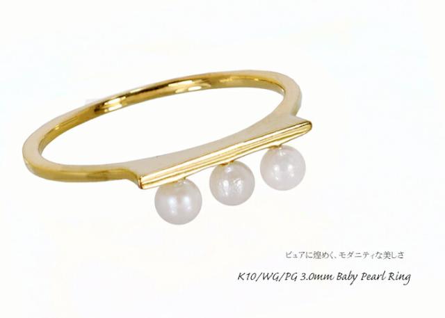 リング あこや 本真珠 ベビー パール 3mm 10金 ホワイトゴールド ピンクゴールド K10 WG PG 3珠 ライン レディース アクセサリー ジュエリー ギフト 83204TY