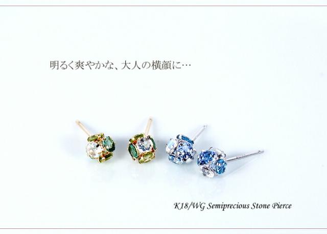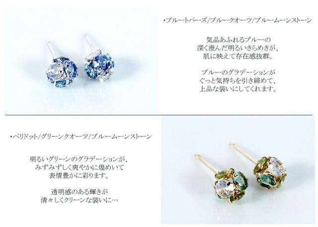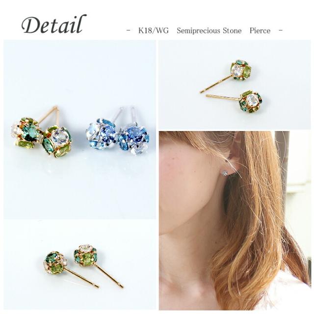 ピアス ブルートパーズ ペリドット ブルー ムーンストーン グリーン クォーツ 18金 ホワイトゴールド K18 WG ボンボリ レディース アクセサリー ジュエリー ギフト 293810