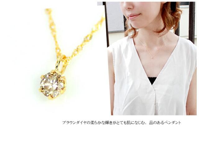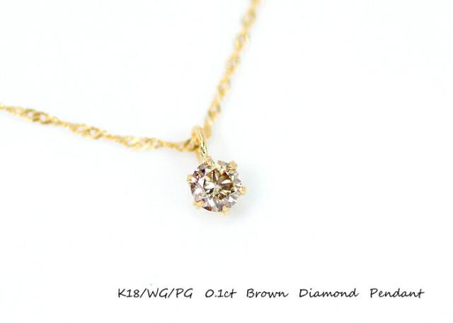 ペンダント ネックレス ブラウン ダイヤモンド 0.1ct 18金 ホワイトゴールド ピンクゴールド K18 WG PG 一粒 1粒 ソリティア 6本爪 6爪 レディース アクセサリー ジュエリー ギフト of5242 ダイヤ