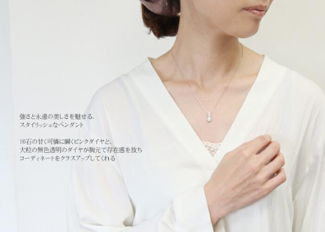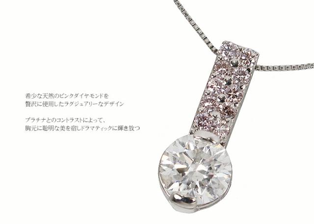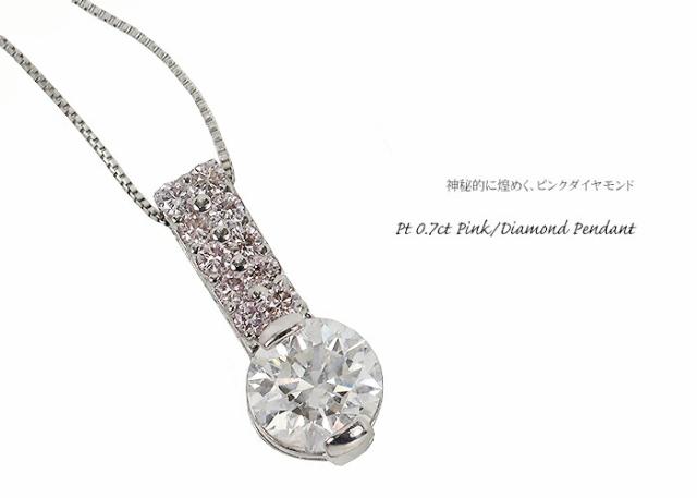 ペンダント ネックレス ダイヤモンド ピンクダイヤモンド 0.6ct 0.1ct プラチナ Pt 2本爪 2爪 レディース アクセサリー ジュエリー ギフト e87700-1 ダイヤ