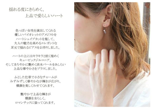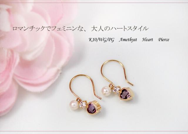 ピアス アメジスト 淡水 パール 3mm 10金 ホワイトゴールド ピンクゴールド K10 WG PG アメリカン フック ハート レディース アクセサリー ジュエリー ギフト m6226ty