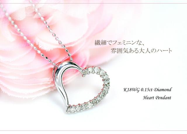 ペンダント ネックレス ダイヤモンド 0.15ct 18金 ホワイトゴールド K18 WG ハート レディース アクセサリー ジュエリー ギフト 169786 ダイヤ