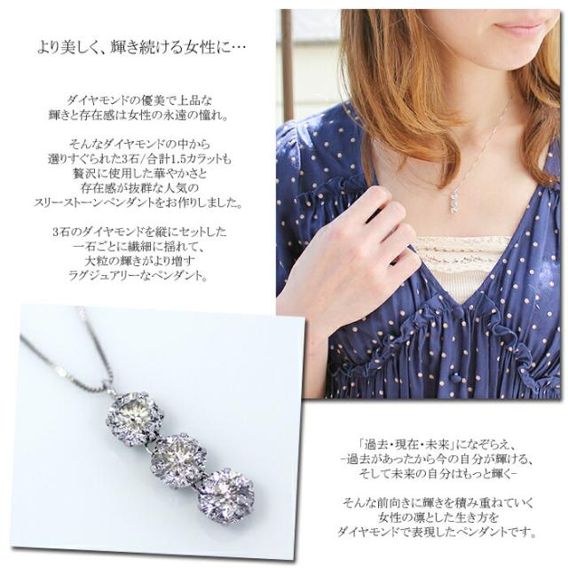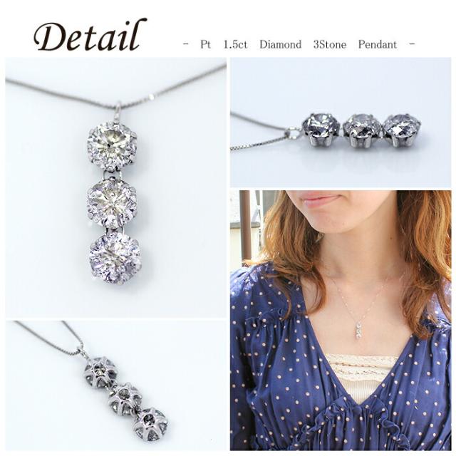 ペンダント ネックレス ダイヤモンド 1.5ct プラチナ Pt スリーストーン 3ストーン 3石 レディース アクセサリー ジュエリー ギフト 172808-4 ダイヤ