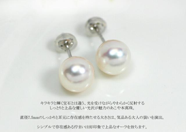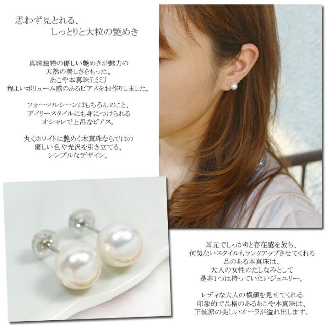 ピアス あこや 本真珠 パール 7.5mm 14金 ホワイトゴールド K14 WG 一珠 1珠 レディース アクセサリー ジュエリー ギフト 176710