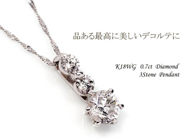ペンダント ネックレス ダイヤモンド 0.7ct 18金 ホワイトゴールド K18 WG スリーストーン 3ストーン 3石 レディース アクセサリー ジュエリー ギフト 184972 ダイヤ