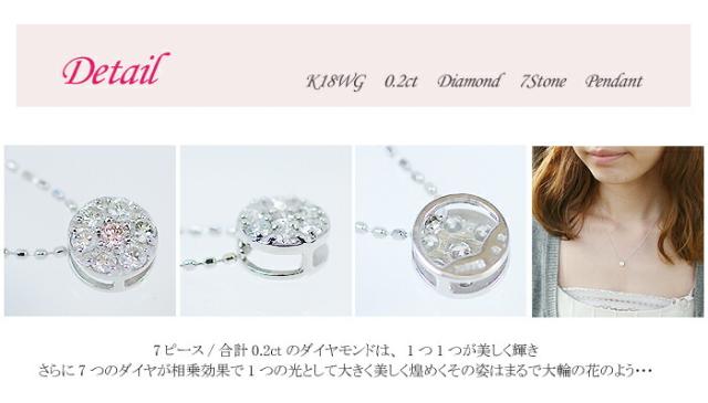 ペンダント ネックレス ダイヤモンド 0.2ct 18金 ホワイトゴールド K18 WG セブンストーン 7ストーン 7石 レディース アクセサリー ジュエリー ギフト 185939 ダイヤ
