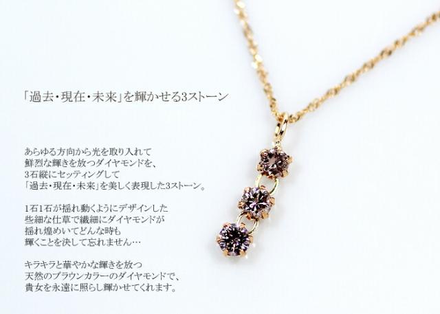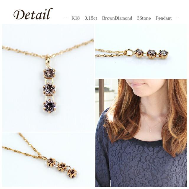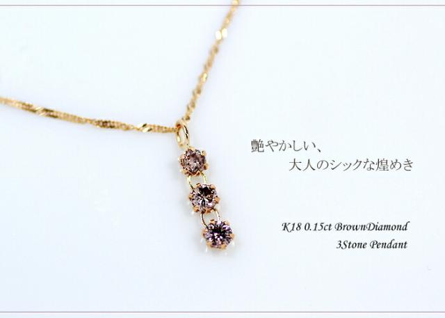ペンダント ネックレス ブラウン ダイヤモンド 0.15ct 18金 K18 スリーストーン 3ストーン 3石 レディース アクセサリー ジュエリー ギフト 114191 ダイヤ