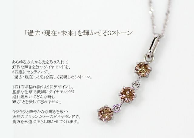 ペンダント ネックレス ブラウン ダイヤモンド 0.3ct 18金 ホワイトゴールド ピンクゴールド K18 WG PG スリーストーン 3ストーン 3石 レディース アクセサリー ジュエリー ギフト 125039 ダイヤ