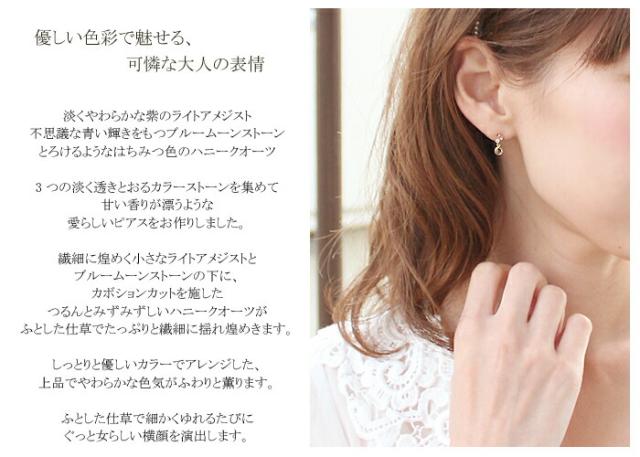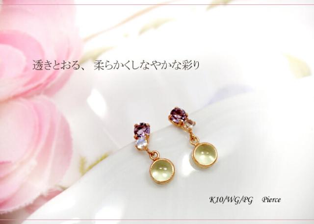 ピアス アメジスト ムーンストーン ハニークォーツ 10金 ホワイトゴールド ピンクゴールド K10 WG PG スリーポイント レディース アクセサリー ジュエリー ギフト m6254ty