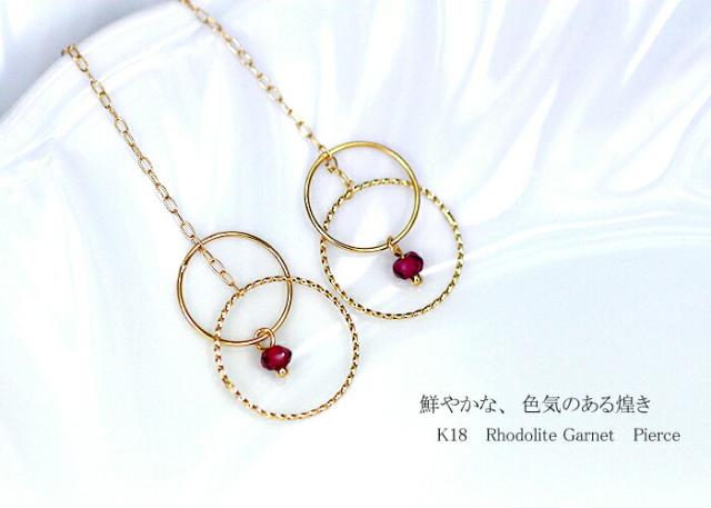 ピアス ロードライト ガーネット 18金 K18 サークル レディース アクセサリー ジュエリー ギフト m6571k-s1