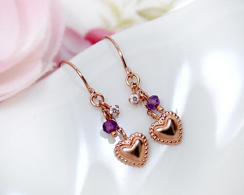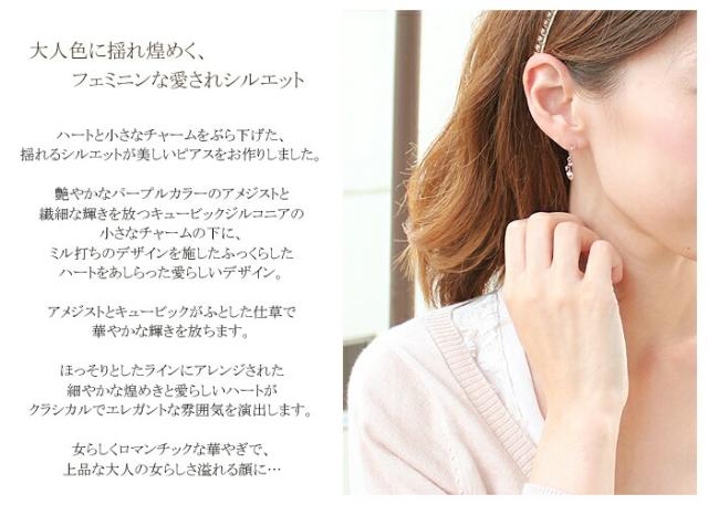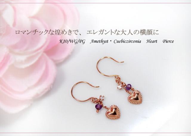 ピアス アメジスト キュービック ジルコニア 10金 ホワイトゴールド ピンクゴールド K10 WG PG アメリカン フック ハート レディース アクセサリー ジュエリー ギフト m6262tp