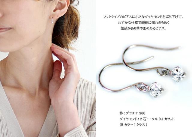 ピアス ダイヤモンド 0.1ct プラチナ Pt アメリカン フック 一粒 1粒 レディース アクセサリー ジュエリー ギフト 187189 ダイヤ