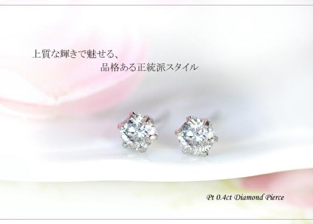 ピアス イヤリング ダイヤモンド 0.4ct プラチナ Pt 一粒 1粒 ソリティア 6本爪 6爪 レディース アクセサリー ジュエリー ギフト 190048 ダイヤ