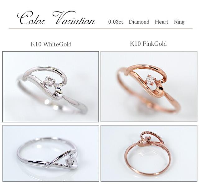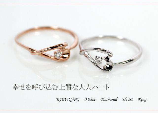 リング ダイヤモンド 0.03ct 10金 ホワイトゴールド ピンクゴールド K10 WG PG ハート レディース アクセサリー ジュエリー ギフト 206795 ダイヤ