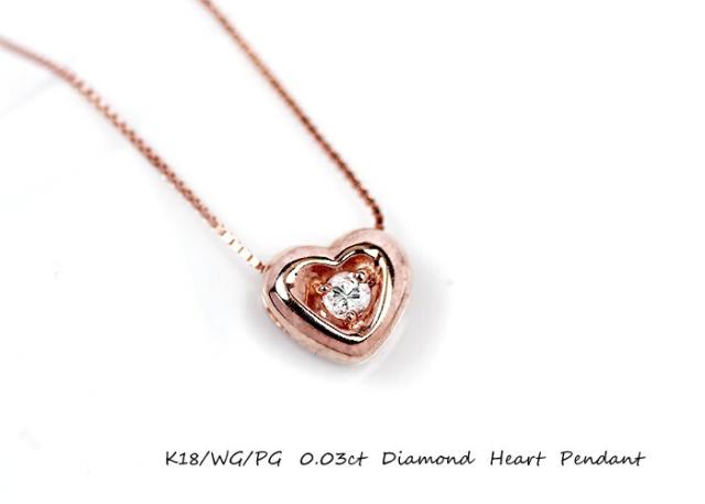 ペンダント ネックレス ダイヤモンド 0.03ct 18金 ホワイトゴールド ピンクゴールド K18 WG PG 台座 10金 K10 チェーン ハート レディース アクセサリー ジュエリー ギフト 206805 ダイヤ