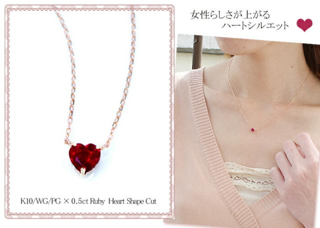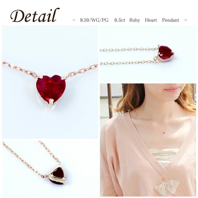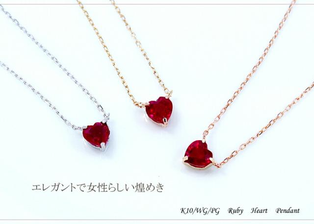 ペンダント ネックレス ルビー 10金 ホワイトゴールド ピンクゴールド K10 WG PG ハート レディース アクセサリー ジュエリー ギフト oe2450