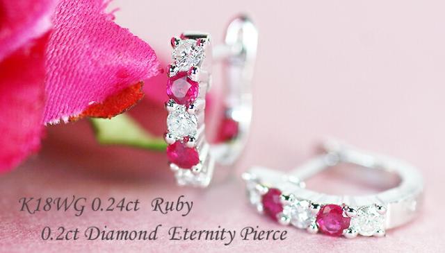 ピアス ダイヤモンド ルビー 0.2ct 0.24ct 18金 ホワイトゴールド K18 WG エタニティ レディース アクセサリー ジュエリー ギフト oe3802 ダイヤ