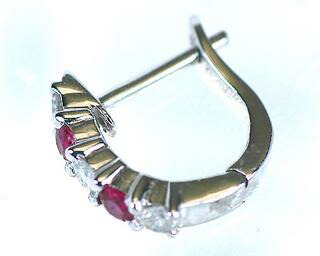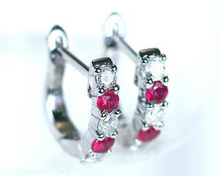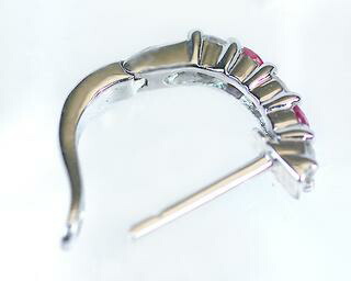 【セット内容】保証書・化粧箱付【ピアス】クロッシング式【地金】18金ホワイトゴールド【大きさ】幅/約3.0mmルビー1石約3.0mmダイヤモンド1石 約3.0mm 【石について】ルビー2石/合計0.24ctダイヤモンド3石/合計0.2ct【総重量】約2.0g※こちらの商品は海外作成のため、発送に1ヶ月以上かかります。