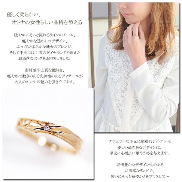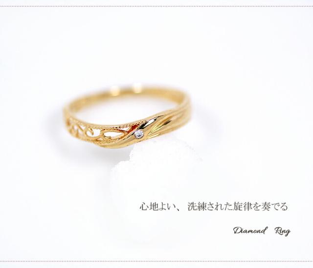 リング ダイヤモンド 0.01ct 10金 ホワイトゴールド ピンクゴールド K10 WG PG 透かし 唐草 埋め込み レディース アクセサリー ジュエリー ギフト 82165 ダイヤ