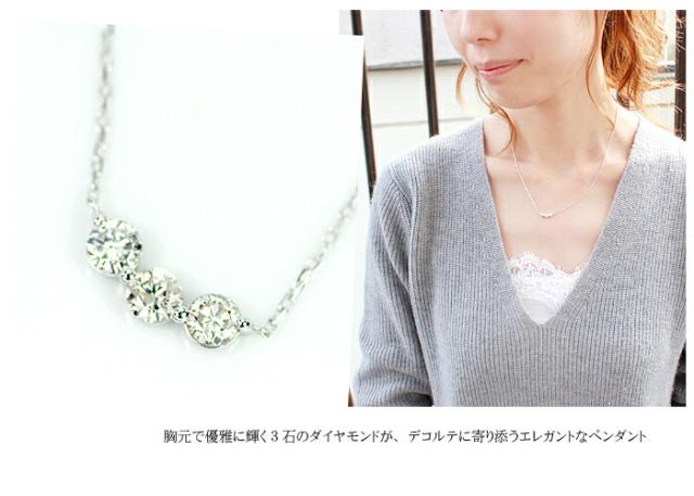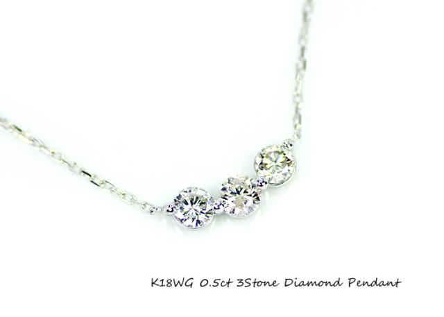 ペンダント ネックレス ダイヤモンド 0.5ct 18金 ホワイトゴールド K18 WG スリーストーン 3ストーン 3石 ライン レディース アクセサリー ジュエリー ギフト ダイヤ 366165