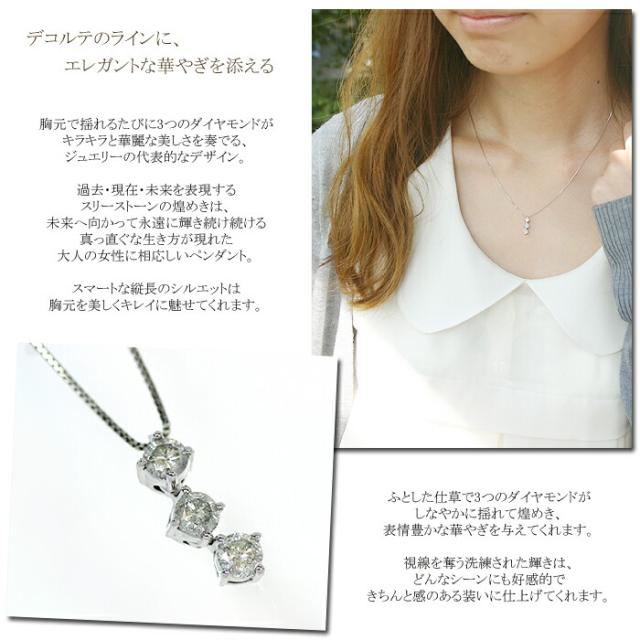 ペンダント ネックレス ダイヤモンド 0.3ct 18金 ホワイトゴールド K18 WG スリーストーン 3ストーン 3石 レディース アクセサリー ジュエリー ギフト 134715 ダイヤ