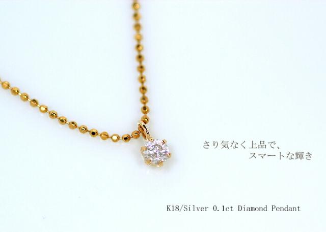 ペンダント ネックレス ダイヤモンド 0.1ct 18金 K18 台座 シルバー チェーン 一粒 1粒 ソリティア 6本爪 6爪 レディース アクセサリー ジュエリー ギフト 144165 ダイヤ