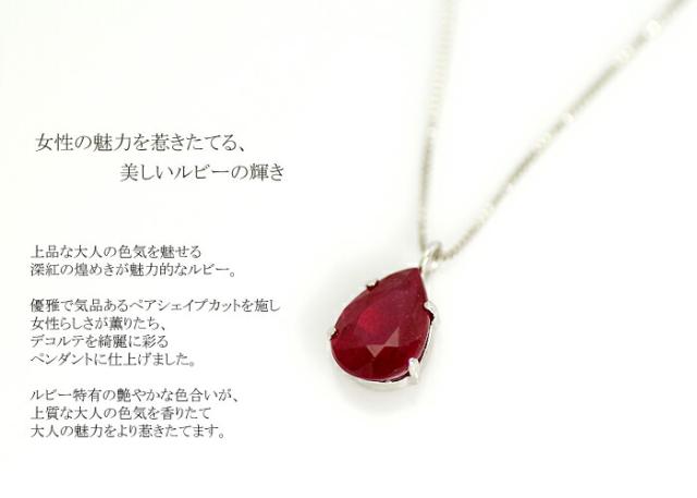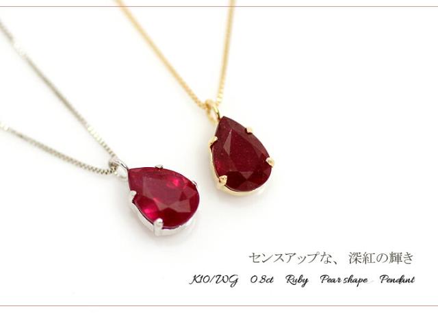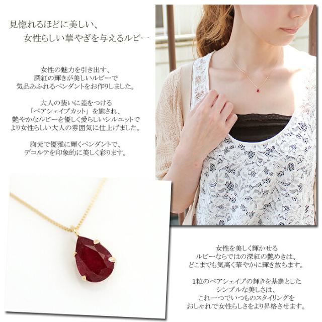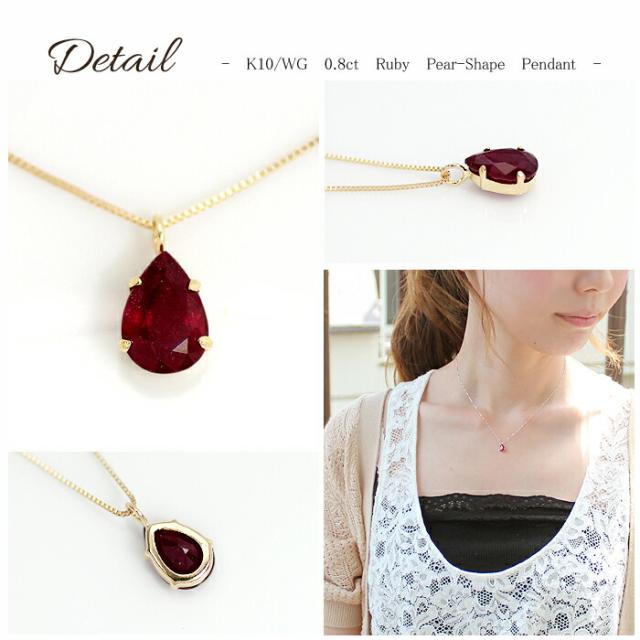 ペンダント ネックレス ルビー 0.8ct 10金 K10 ペアシェイプ ティア ドロップ 雫 しずく レディース アクセサリー ジュエリー ギフト oe5235