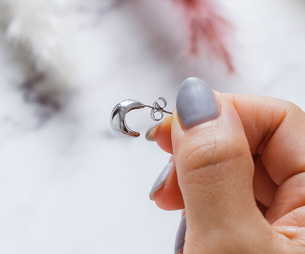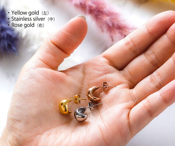 | コメント | 程よい丸みが耳に寄り添うミニマムなスタッドピアス。 艶やかで大人っぽくエレガントだけじゃない、コロンと程よい存在感。 可愛く、上品に、カジュアルに、モードに...どんなコーデにも合わせやすく、年齢や性別を問わずお使いいただける、毎日着けたくなるピアスです。 医療用にも使われているサージカルステンレス製で肌に優しく、金属アレルギーでアクセサリーをつけられない方にも安心です。シルバーアクセサリーより軽くて丈夫で変色しにくい素材ですので、ティッシュや柔らい布などでサッと拭くだけでいいので、お手入れが簡単です。 注意:お風呂や温泉で変色しにくいですが、外していただく事をおススメいたします。 ※こちらは片耳用で一つでの販売となります。(片耳販売) |