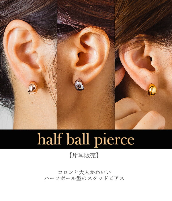 ピアス 金属アレルギー対応 レディース 片耳用 スタッド サージカルステンレス ハーフボール しずく 上品 オシャレ メンズ 男女兼用 高見えつけっぱなし ファッション 重ねづけ 女性 大人 シンプル henoheno ブランド