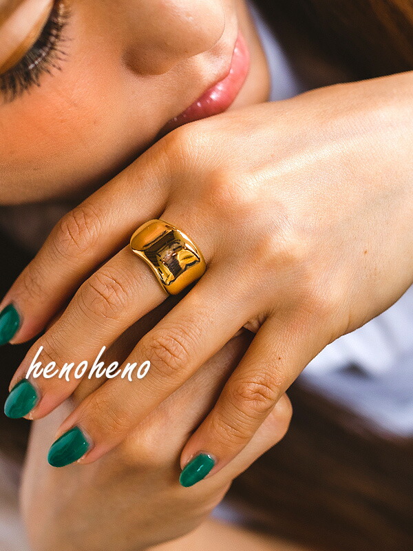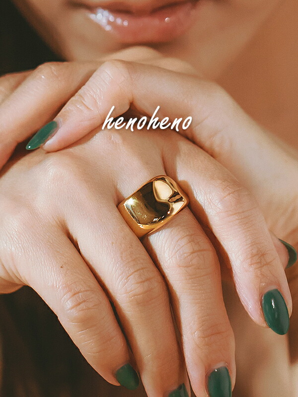 リング レディース 指輪 幅広 太め 金属アレルギー ゆがみ 変形 カーブ 個性的 シンプル おしゃれ デザインリング メンズ ボリューム 大ぶり モード 大きいサイズ トレンド 個性的 サージカルステンレス クリスマス ブランド henoheno