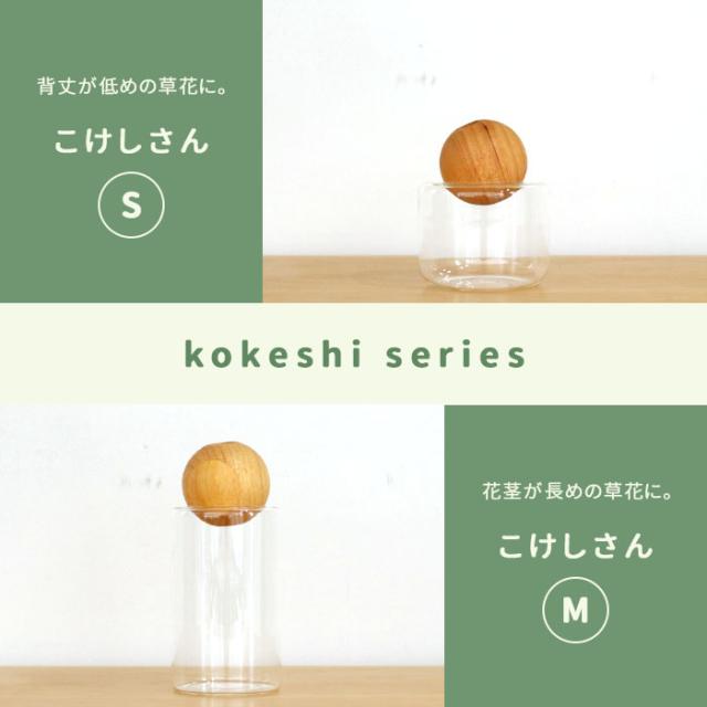 シンプルながら個性的なこけしさんシリーズ 「Sサイズ」と「Mサイズ」、 生けたい草花の背丈やイメージに合わせて、シリーズ使いもおすすめです。 |
