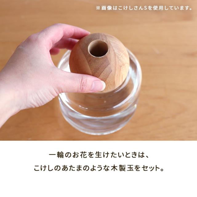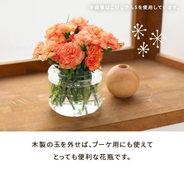 木とガラスの組み合わせがかわいい花瓶「こけしさん」。 そのままでも目を引くデザインですが2通りの使い方が楽しめる、とっても便利な花瓶です。 |