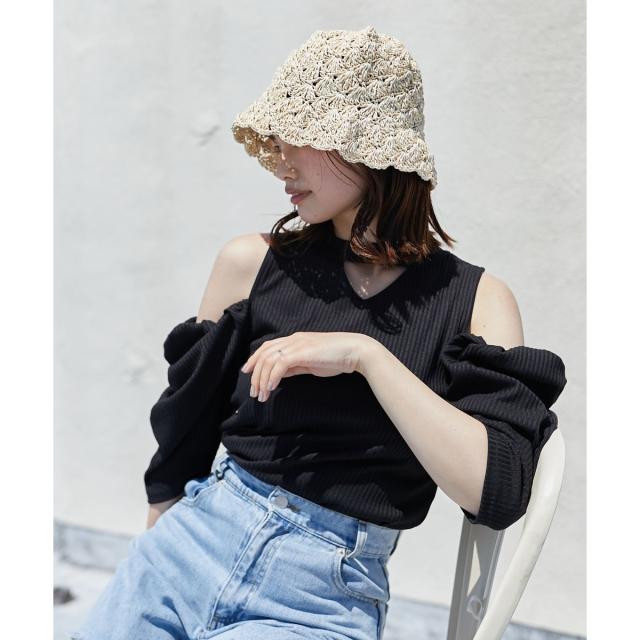ショルダースリットリブトップス
