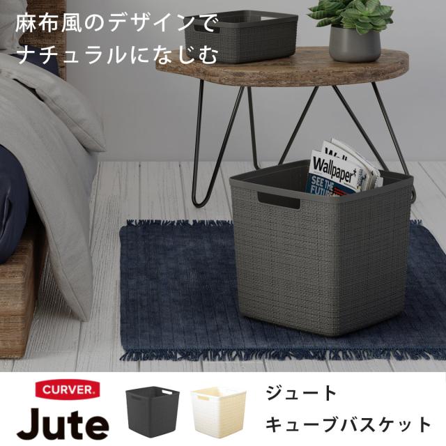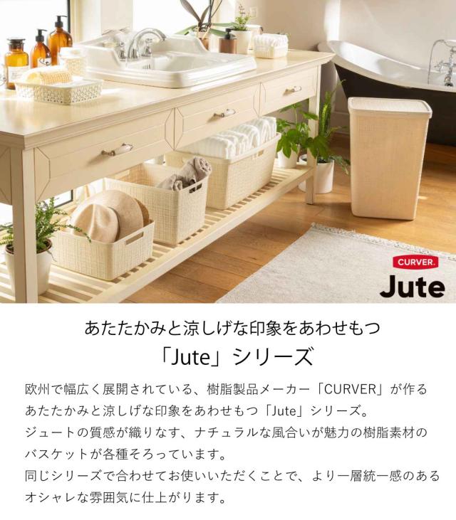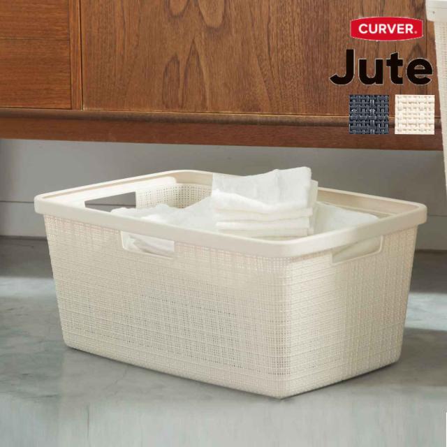 ランドリーバスケット CURVER ジュート キューブボックス 17L ( カーバー Jute バスケット ランドリー 持ち手付 洗濯 脱衣かご 洗濯かご 収納 17 おもちゃ 水回り 脱衣所 シンプル 軽量 ジュート風 )