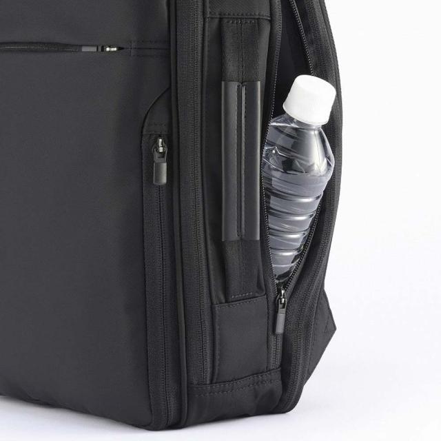 側面ファスナーと本体気室の双方から物の出し入れが可能なポケット